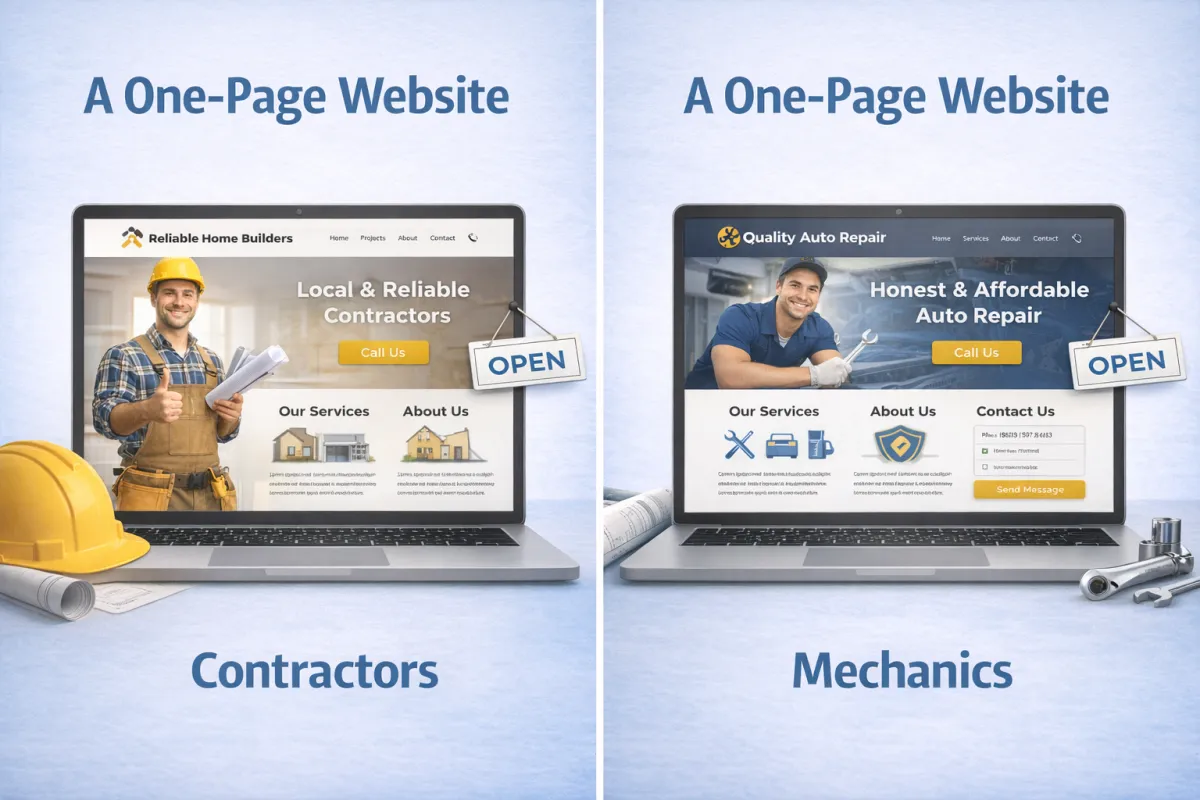 A focused one-page website that clearly explains what you do, builds trust, and makes it easy for customers to contact you, all hosted and maintained for you.